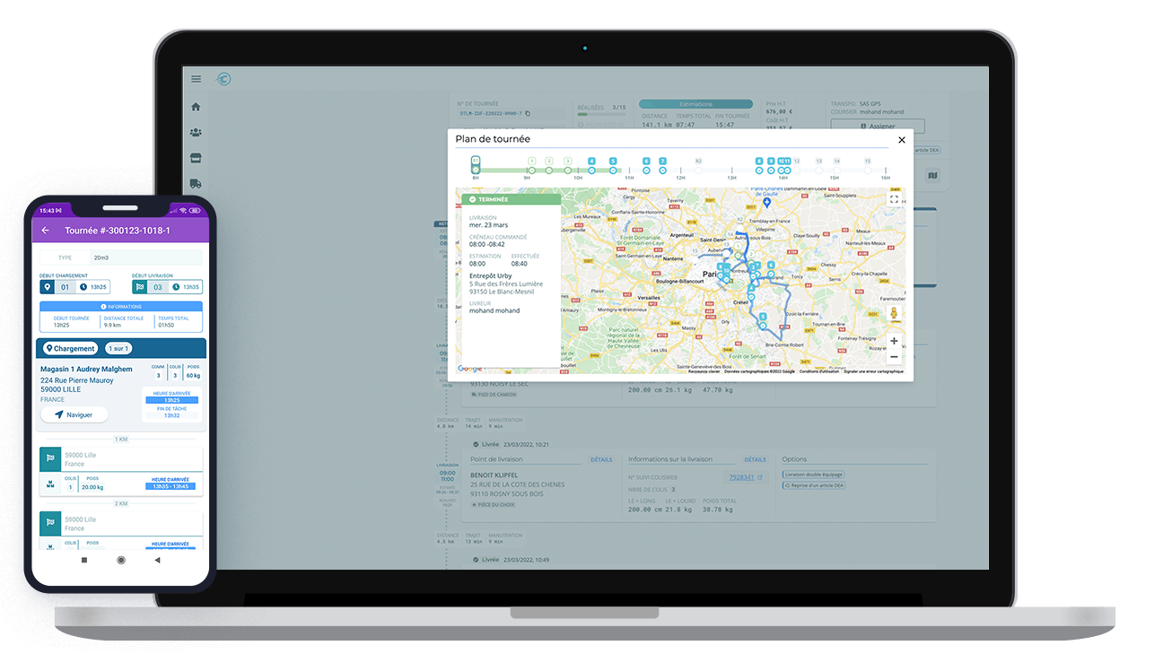 Grâce à nos outils de tracking, vous avez la vue sur l’ensemble des étapes de livraison, de la prise de commande jusqu’à la livraison du client final.